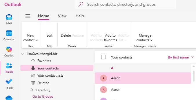 It’s also hard to write up a “how-to” as so many people have different types of contact data setup in New Outlook. This post is long but worth the read if you are having issues or want to learn. I will update this page as I have more testing results. This is the kick off of my whitepaper. Bookmark this page if you like, it will be posted on this page as well https://callthatgirl.biz/new-outlook-resource-guide/